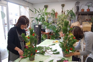 若松、根引き松、金雲竜柳、ヒバ、実南天、千両、などを用いながら