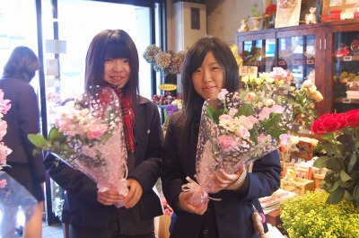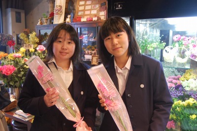 毎年、卒業生からはお世話になった先生に渡すお花、